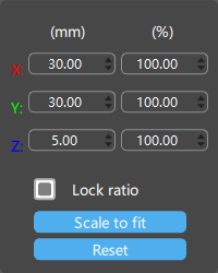 Lock ratio: lock the ratio of the selected model's X-axis, Y-axis and Z-axis for scaling.
