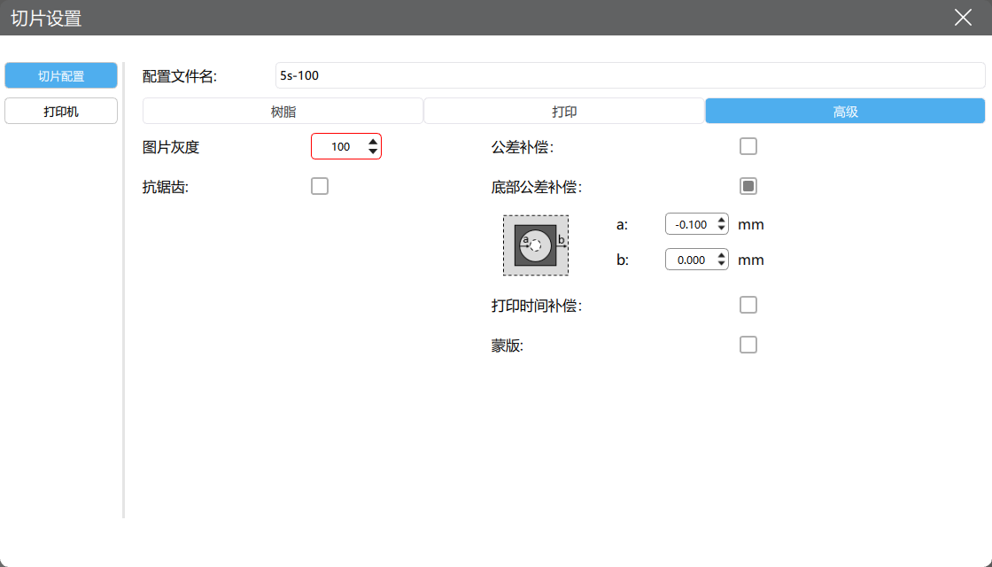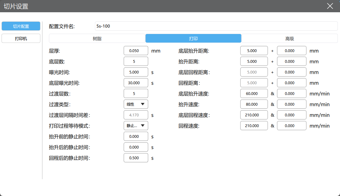 Screenshot of CHITUBOX software printing parameter interface | Printer | Default | ||