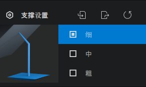CHITUBOX 提供了 3 种默认的支撑设置:细、中、粗。如果它们不适合您的模型,您可以自定义支撑设置并导出以供将来使用。