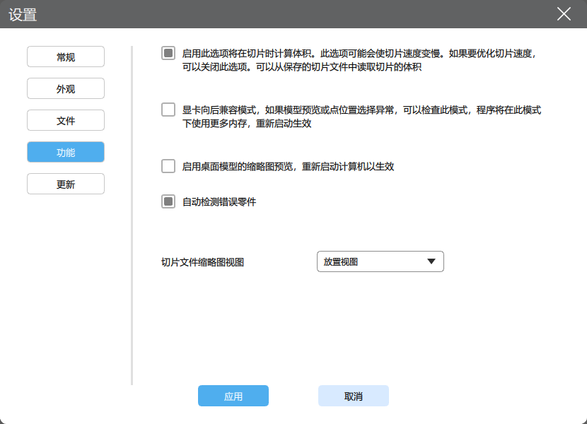 启用切片时计算体积可能会使切片速度变慢。